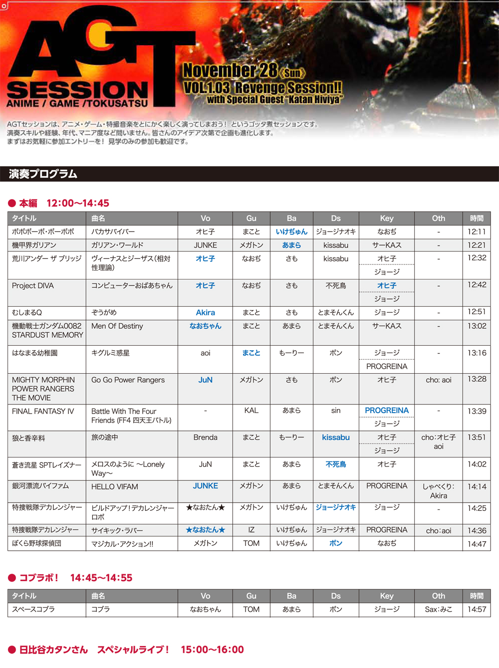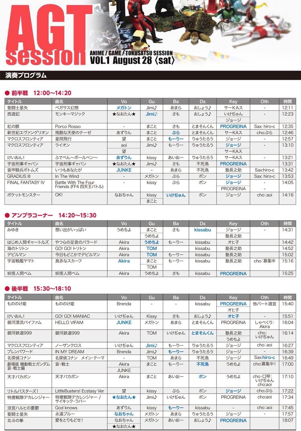 某セッションにて、ジョージ(主催その2:Key)が合間にゲーム曲を弾いているのをPROGREINA(主催その1:Key)が聴き「アニメ・ゲーム・特撮のセッションとかあったらいいですね」という話になる。