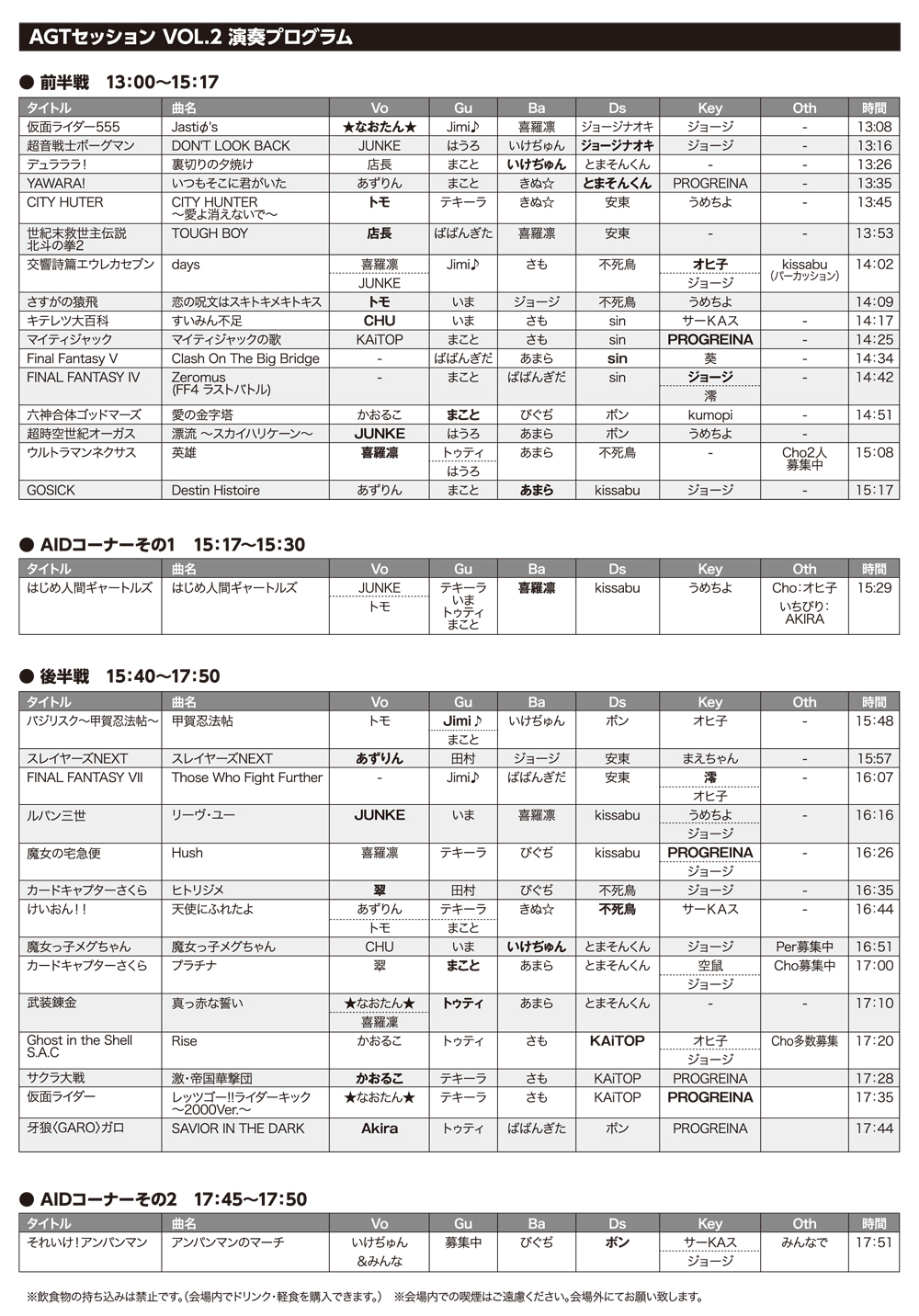 AGTセッションVOL.3 開催。新ルール「ポイント制」などを導入。リクエスト開始からわずか2週間程度で演奏曲が全て決まってしまうという熱狂ぶりに主催もびっくり!参加特典グッズはAGTステッカー。